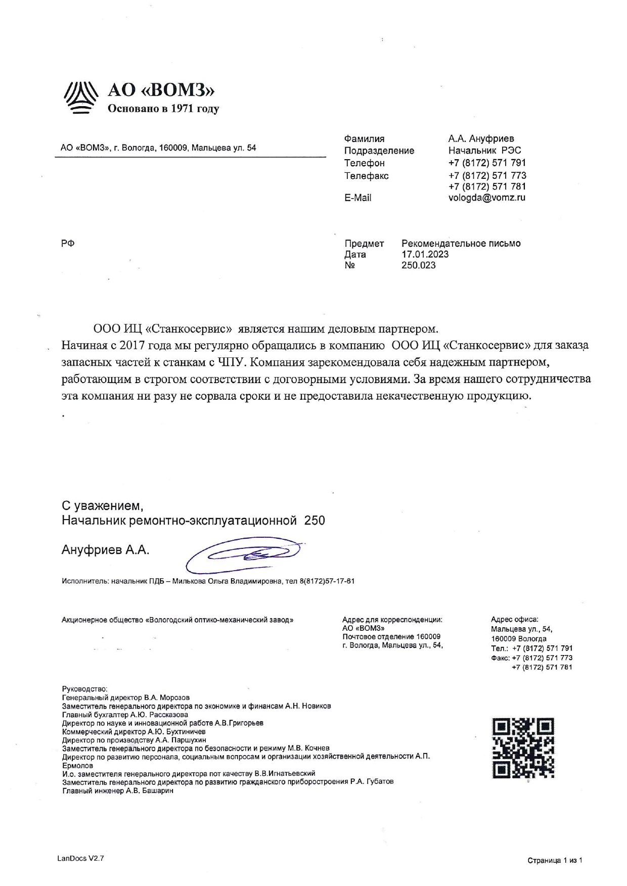 о профессионализме сотрудников ООО ИЦ «Станкосервис».