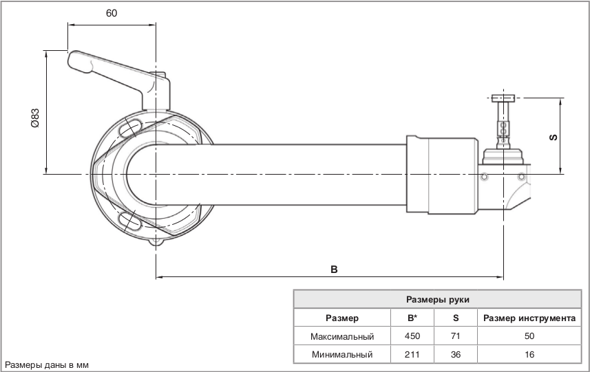 Рука HPRA — съемное приспособление для настройки инструмента, которое оператор устанавливает на станок вручную перед началом наладки и снимает по ее завершении. При выполнении измерений устройство жестко закрепляется на своем основании, гарантируя высокую точность повторного позиционирования. В нерабочем состоянии рука размещается на держателе — на самом станке или рядом с ним.