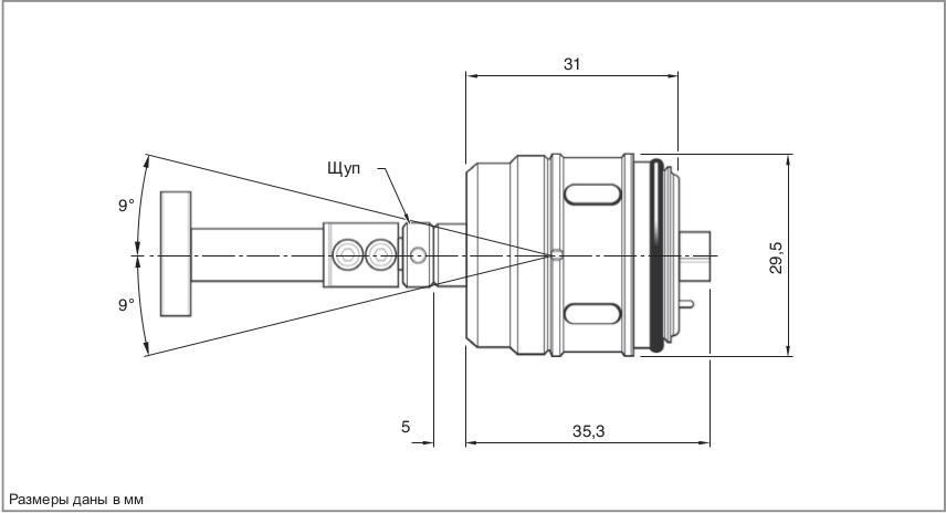 - Защита датчика в случае выхода за пределы перебега с помощью ломкого предохранителя щупа.